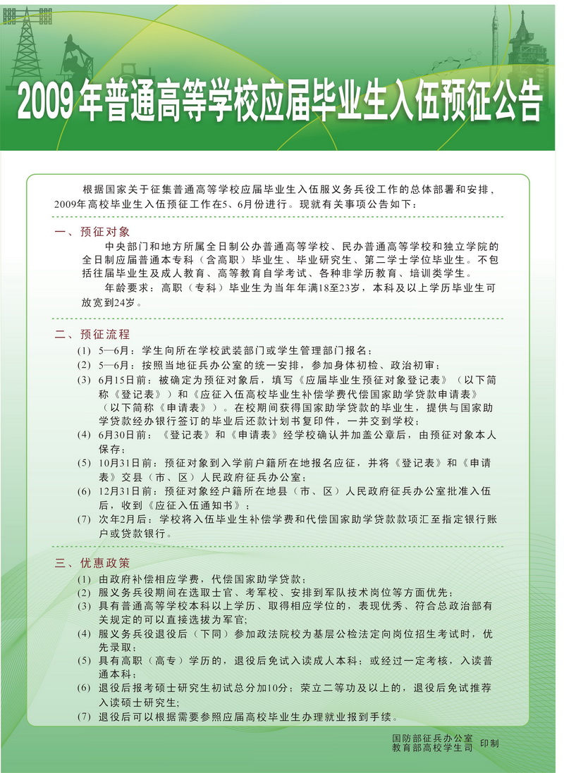 普通高等公司应届毕业生入伍预征公告