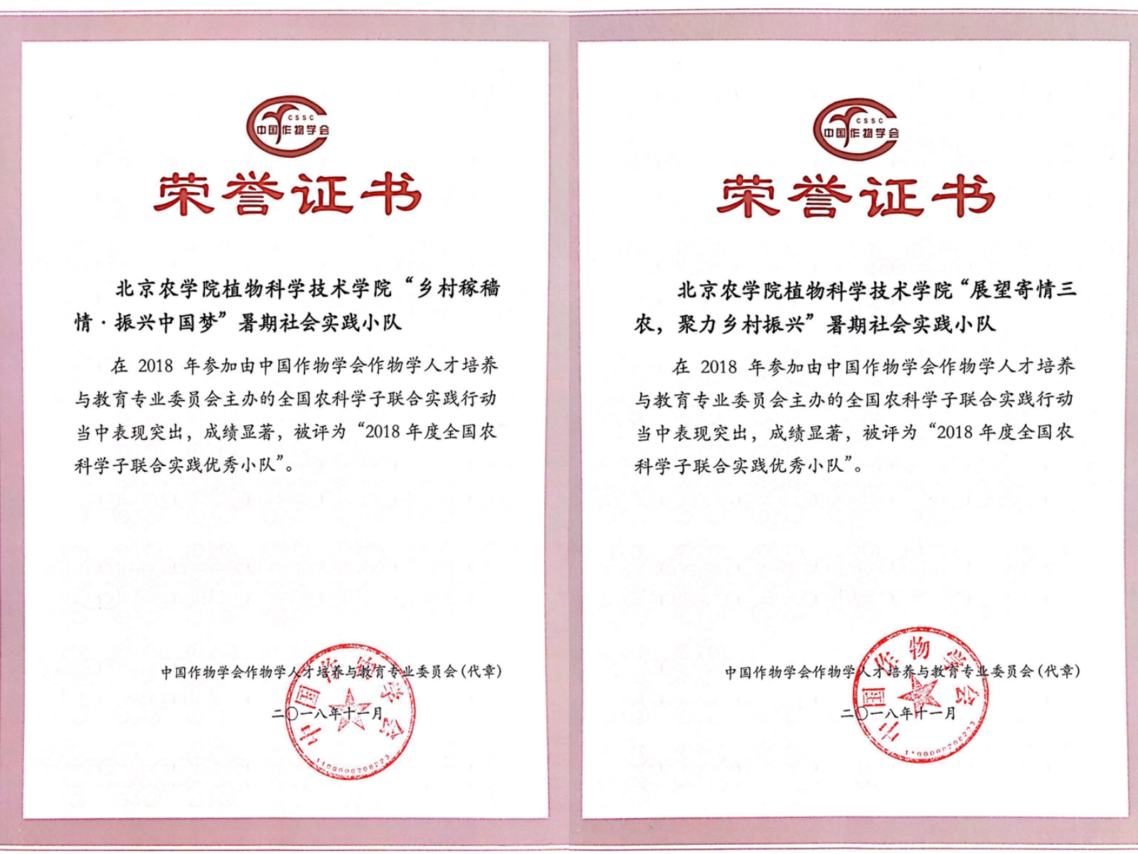 2018年度全国农科学子联合实践优秀小队:betway西汉姆联“乡村稼穑情,振兴中国梦”暑期社会实践团;betway西汉姆联“展望寄情三农,聚力乡村振兴”暑期社会实践团