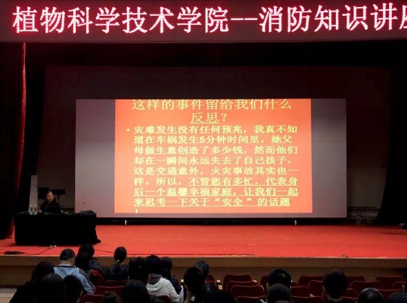 解鹏飞老师联系实际,通过触目惊心的案例,运用图片资料,从防范、逃生、自救、报警等四个方面深入浅出地介绍消防和交通知识。特别介绍了如何扑救初起小火、电器的防火措施、高楼起火如何逃生、灭火器等消防设施的种类和使用方法,同时,用活生生的事例纠正了许多逃生的误区。解鹏飞老师边讲边问,案例扣人心弦,内容环环相扣,给全体师生上了生动重要的一课。
