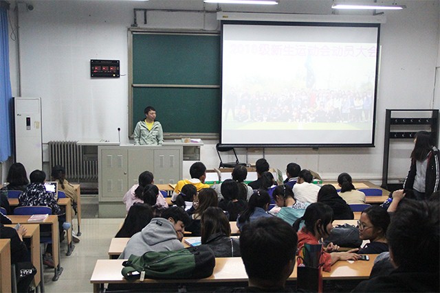 2018年10月17日晚上8:10,betway西汉姆联在教室楼A座102室召开新生运动会动员大会,到场人员有betway西汉姆联运动队队长邓勇,团学组织员工干部及参加本次新生运动会的运动员。