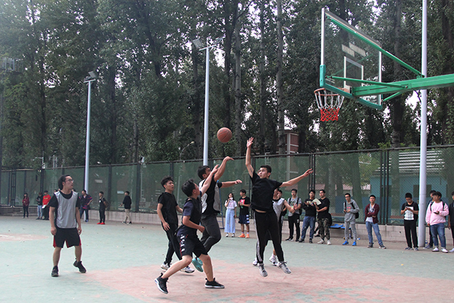 热血的青春灌注飘洋,热血的男儿奔跑希望。随着一声哨响,比赛正式开始。园艺队与资环队展开激烈的角逐,双方队员以猜拳决定球权,资环队首先拿到球,之后快速进球,园艺队员也开始进攻,力度较弱,球被弹出,资环队三人具有身高优势,夺得篮板,连续领先!场外的同学都热情地为所在班级加油呐喊。园艺队员迎头赶上,夺回几分。中场休息时间,双方队员商定比赛策略。下半场一开始比赛就非常激烈,资环队员单带上篮,打出来切口,园艺队员抢下篮板再上篮,争回一球。最终以37:24的比分资环队夺得胜利。