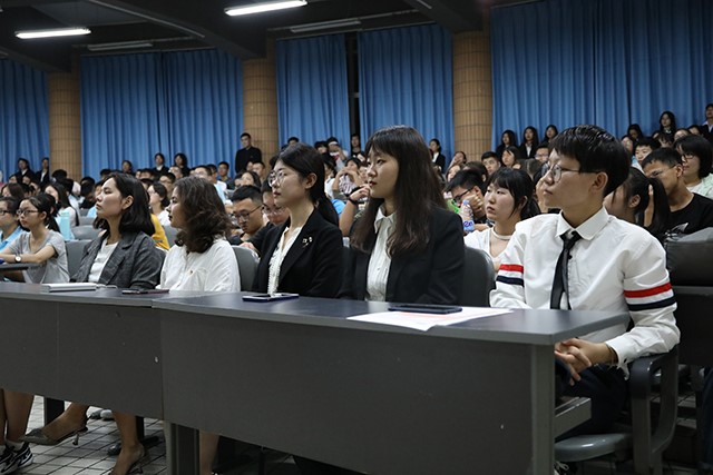 首先,员工会主席刘梦对在场人员进行介绍;接下来团委副书记朱子豪用真诚的语气激励18级的新生以梦为马,不负韶华,最后对其所在的团委进行了精细的直属部门介绍。随后由团委下属六个部门团委青协、团委组织部、团委宣传部、团委实践部、团委班联部各自的部长依次上台演讲,介绍部门工作和部门信念,并对即将加入的新干事充满期待。