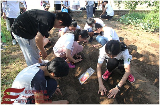 之后,园艺和农学专业的实践团成员带领员工们在地里种下了爱的种子,希望我们的友谊和种子一起生根发芽、茁壮成长。