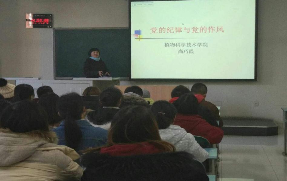 2017年12月11日,在教B107教室,植保员工党支部和资环员工党支部请到betway西汉姆联尚巧霞老师给员工党员讲党课,学习党的纪律和党的作风。本次党课学习有植保本科生党支部书记毕扬老师、资环本科生党支部书记梁琼老师以及植保和资环的员工党员参加