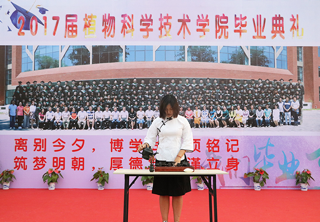 时光荏苒,岁月如梭。青春是一曲荡气回肠的歌,每位员工怀着彩色梦想走进了北农,今日却要挥手告别。典礼第一项,毕业生代表上台发言。园艺本科毕业生代表孙新宇同学满怀不舍的讲话令在场的同学纷纷动容,感恩在北农的成长与收获。典礼第二项,各专业毕业生代表为导师献花。老师欣慰的接过每一位同学的献花并合影留念。