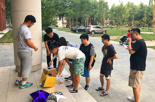 在活动的最后,同学们都举着自己的奖品流下快乐的泪水。大家都从定向活动中感受到了校园的温情与关爱。即将要离开陪伴他们成长,教育他们成才的公司、老师、同学,有欢笑、有不舍、有感动、有期待,一壶浊酒尽余欢,今宵别梦寒!