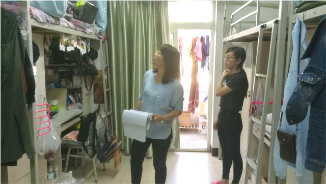 女生宿舍情况基本良好,但是还存在一些安全隐患,如:插销没拔、电脑没关等。男生宿舍卫生基本整洁,但有的宿舍接插线板过多,还有的宿舍也存在私调宿舍等问题。牛奔老师一一询问原因,并提醒同学注意安全隐患,防患于未然。
