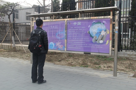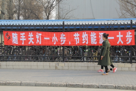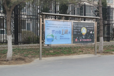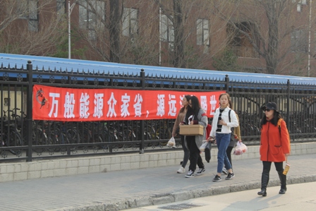 茶社的同学们将“栋梁之才不可无,生命之水不可枯”等内容的条幅挂在七号宿舍楼外已提醒同学们节约用水用电的重要性。同时还将带有介绍国内外水资源情况及各国采取的科技化节能措施的海报张贴在员工公寓区域三食门口的告示栏上,以普及大家的节约常识。