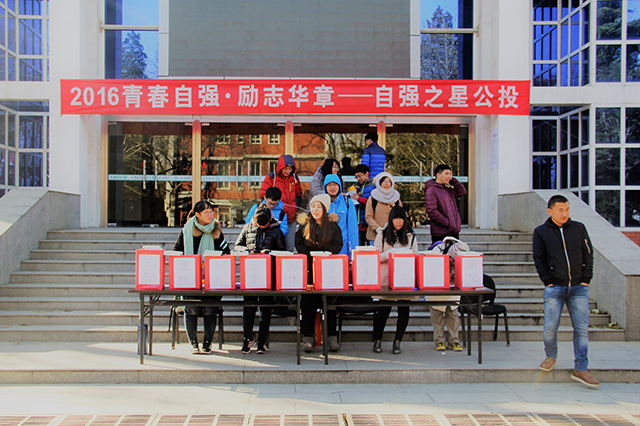 为了鼓励betway西汉姆联员工学会自立自强,更为了给北农学子树立榜样,2016年11月22日至23日,北农校员工会在礼堂门口举办了自强之星公投活动。此次公投占总成绩比例的30%,所以每一票都对自强之星都非常重要。