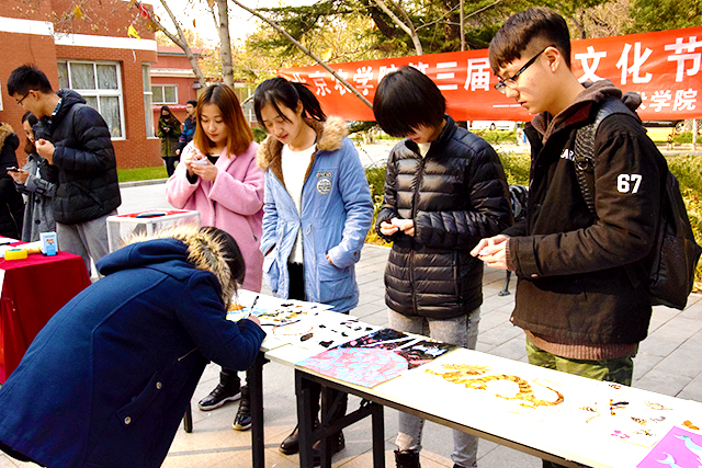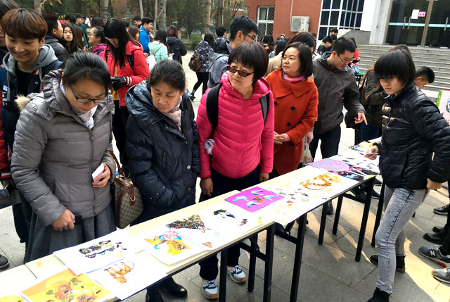 在活动进行中,同学们也都纷纷停下了脚步,在礼堂前欣赏在那里已经摆放好的昆虫标本画。同学们不仅讨论标本画本身,还讨论构成标本画的昆虫习性和爱好等,现场出现了很热烈的专业学习氛围。参赛的同学甚至讲述着自己与标本画的故事,让人印象深刻。最后,每个人都选出了自己最喜欢的那一幅作品,投出宝贵的一票。