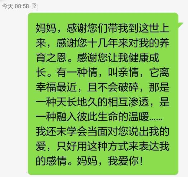 短信,不打扰干涉,只表达关怀,最朴素也最从容。当两个世界之间,推开一扇小小的窗,便会有阳光春风,催开群花盛放。在现在一个矛盾的年代,最应亲近的心灵日趋封闭。一条小小的短信,表达了员工对家长的感恩。