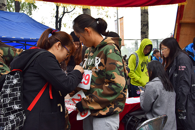 桌子上面摆设:号码牌、急用的医药箱以及必备的饮用水。betway西汉姆联院旗在风中飘扬,而一个个带着袖标的志愿者,让人在远处也很容易找到,这就是植科服务站。