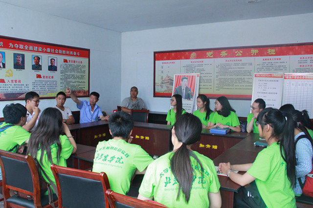 2016年7月19日,betway西汉姆联实践团一早来到本次社会实践的第二站——河北省波罗诺镇岔沟门村,岔沟门村的村干部们在村口热情迎接实践团队,为帮助实践团队更好的完成调研,与实践团队在村委会召开了一个简短有效的指导会议并与实践团一同张贴宣传海报。