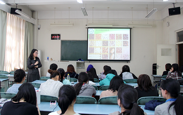 首先,李润枝向同学们展示了以前参赛的优秀作品。以人物为主题的作品惟妙惟肖,以文化为主题的作品清新飘逸,以节日为主题活灵活现,每幅作品都栩栩如生,每一粒种子的摆放都恰到好处。随后,向大家详细介绍了一些种子的颜色与形状及制作种子画的步骤和材料,并提醒同学们要注意种子提前的准备:清洁和高温杀虫处理。在活动的最后,郝娜老师讲到,此次大赛参赛的作品应注重意境和寓意,最好还能有注释,让其他同学更加理解作品的内容。