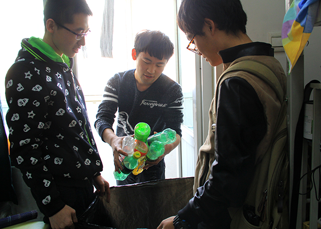 这次活动的内容是向同学们收集废弃的塑料瓶。首先,志愿者轻轻扣响宿舍的门扉,门开后,礼貌地向同学问询是否有可回收的瓶子,同学们热情的把平时积攒的废塑料瓶清点好投入回收袋中,短短一个中午的时间,便收获了满满五袋塑料瓶。由于志愿者们的耐心问询和同学们的积极配合,本次活动开展得非常成功,共计回收到528个塑料瓶。
