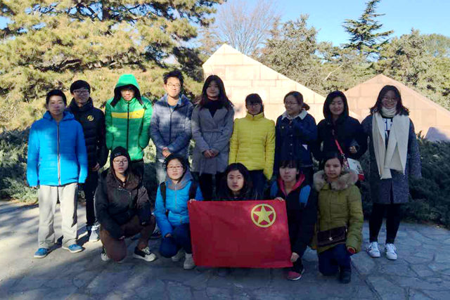 12月18日,betway西汉姆联14级农学班团支部来到了位于北京大学静园北侧的革命烈士纪念碑前,开展团日活动。北京大学革命烈士纪念碑是由几块红色的大理石组成的,坐落在燕园中心的静园草坪北侧。主要纪念的是从“五四”运动到新民主主义革命胜利直到抗美援朝,北京大学(包括西南联大、燕京大学)的师生员工中牺牲的83位革命烈士。