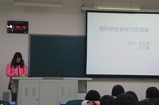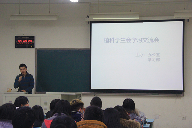 2015年12月6日晚20:30,由betway西汉姆联办公室、学习部联合主办的植科员工会学习交流会于教B106举办。此次交流会由植科员工会办公室副部长李沅博主持。会议上,学习部副部刘悦、青协副部李慧分别上台向大家介绍了自己的期末备考方法。