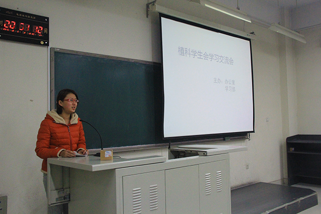 植科员工会学习部部长马俊杰做最后总结陈词,她向同学们强调了期末考试的重要性,并阐述了优异的成绩在评奖评优方面的优势。她鼓励成绩好的同学力争奖学金,拔尖的同学争取获得农大交换生的名额。