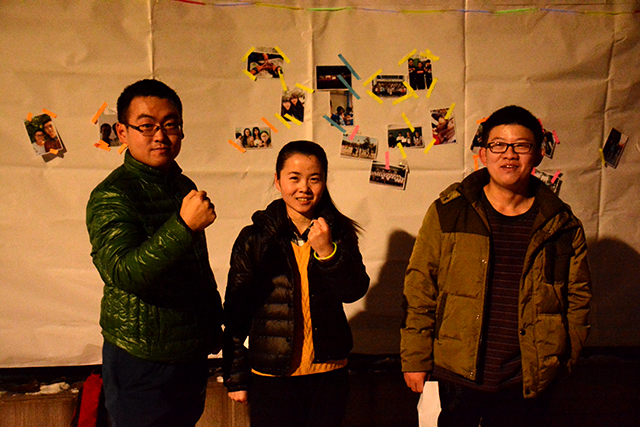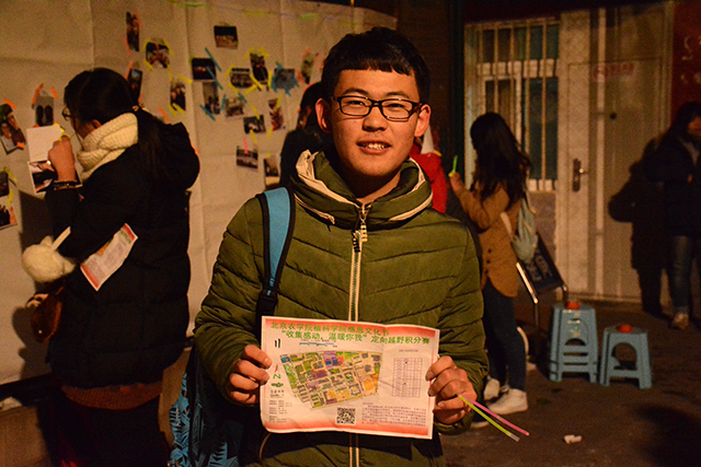 现场分发了地图与计时卡后,比赛在傍晚17点正式开始。参加定向的同学们,如离弦的箭一般冲出,虽然路面依旧结着冰,但是同学们都不畏路面的冰障,奋力前行,你追我赶。天逐渐的暗了下来,同学们凭着街边路灯微弱光线,依旧努力地完成着任务,用敏锐的目光寻找照片。在经历大约1小时的奔跑寻觅后,同学们陆续抵达终点,他们将手中紧握的照片粘贴在巨大的照片墙上,同学们的脸上均露出浅浅的微笑。