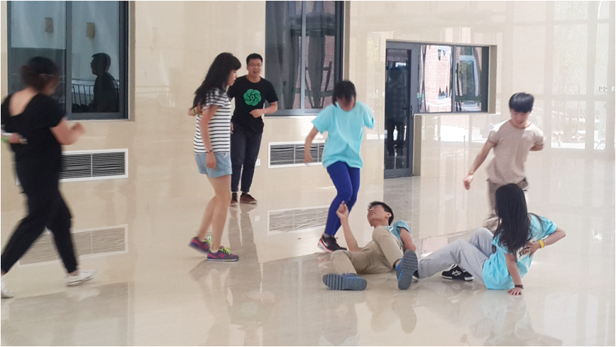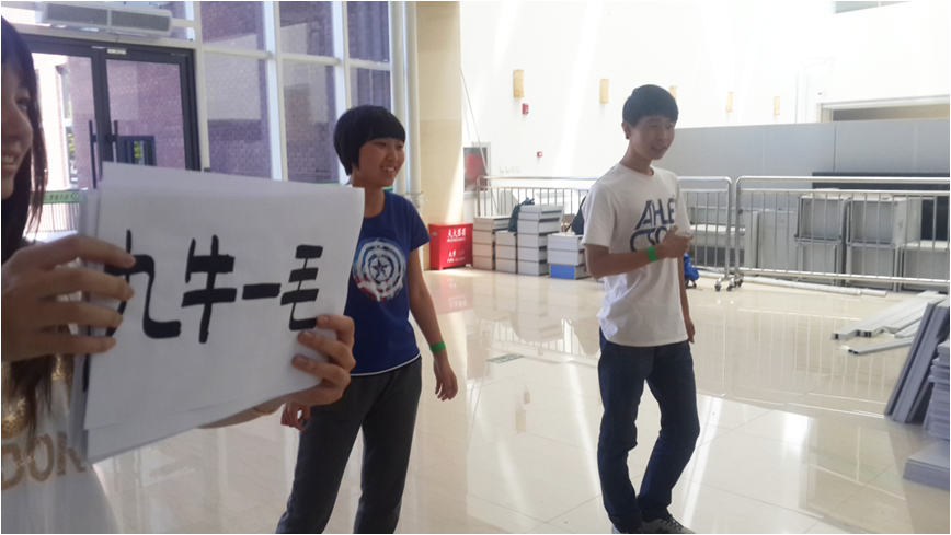 第一个游戏“绕口令”极具难度,同学们开始频繁出错,后来团结一心,用心的完成了题目,顺利通关。“你比我猜”游戏让同学们捧腹大笑,黄队以4分的优势略胜蓝队和绿队,获得锦囊。
