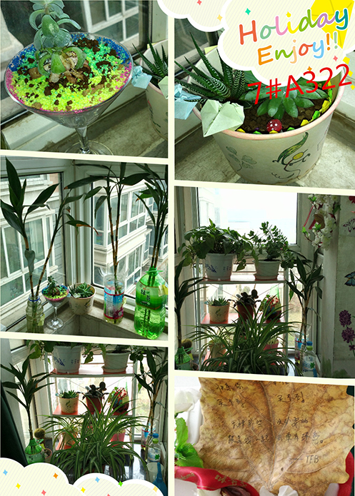 值得一提的是,该活动不仅仅有大一大二的同学参与,连即将面临实习的大三员工也在百忙之中参加了这个活动,并获得了“美丽阳台”的称号。男生5号楼519宿舍去年被评选为公司“宿舍之星”,在建设绿色阳台方面也毫不逊色于女生们。
