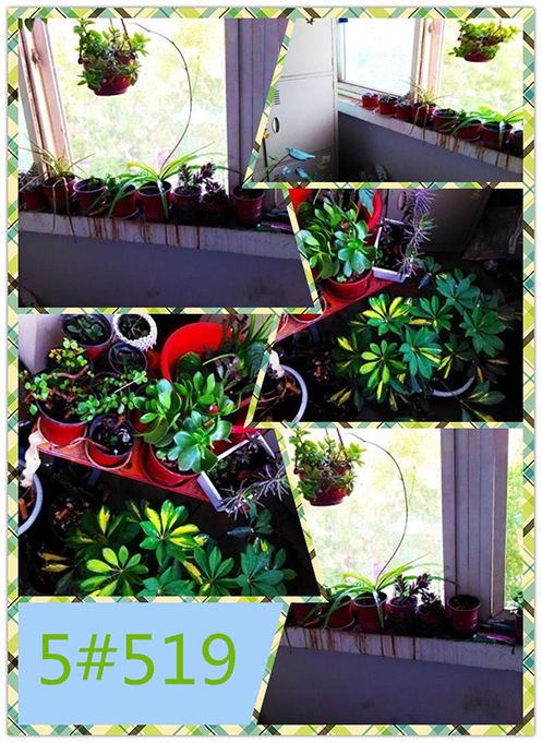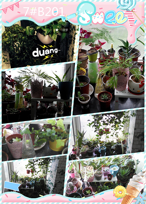 春天是希望的象征,8号楼的125和132宿舍构建的美丽阳台淋漓尽致的展示出了春天的希望。那刚刚破土而出的绿色小芽正倔强的推开前进路上的一切阻碍,那么幼嫩却依然顽强生长,可想而知,这两个宿舍在照顾绿植上有一定的经验。