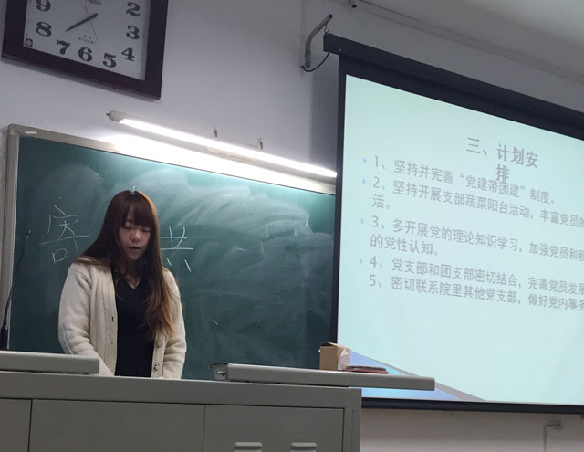 公司4个研究生党支部书记代表党支部对2014年的工作做了总结,总结成果找出不足,提出解决方案。辅导员贾慧敏将各党支部的特色工作、重点工作、党员发展工作做了详细部署,解读了《中国共产党发展党员工作细则》、《北京高校发展党员工作程序》,要求各党支部遵循“坚持标准、保证质量、改善结构、慎重发展”的方针,积极慎重地做好本支部的发展党员工作。党支部党员和团支部书记积极讨论,发表自己的观点,提出了很好的建议和意见。