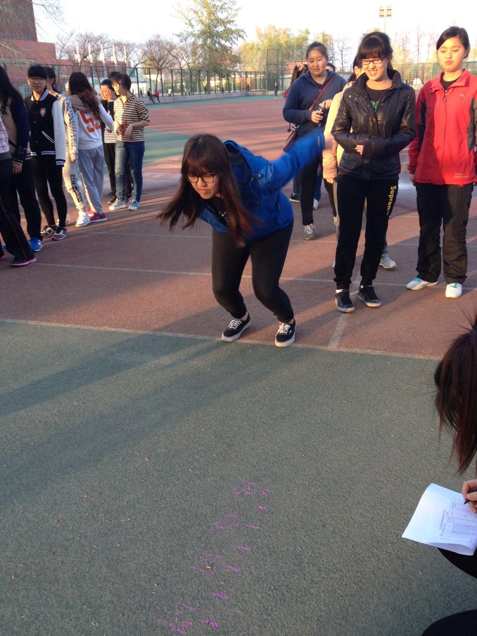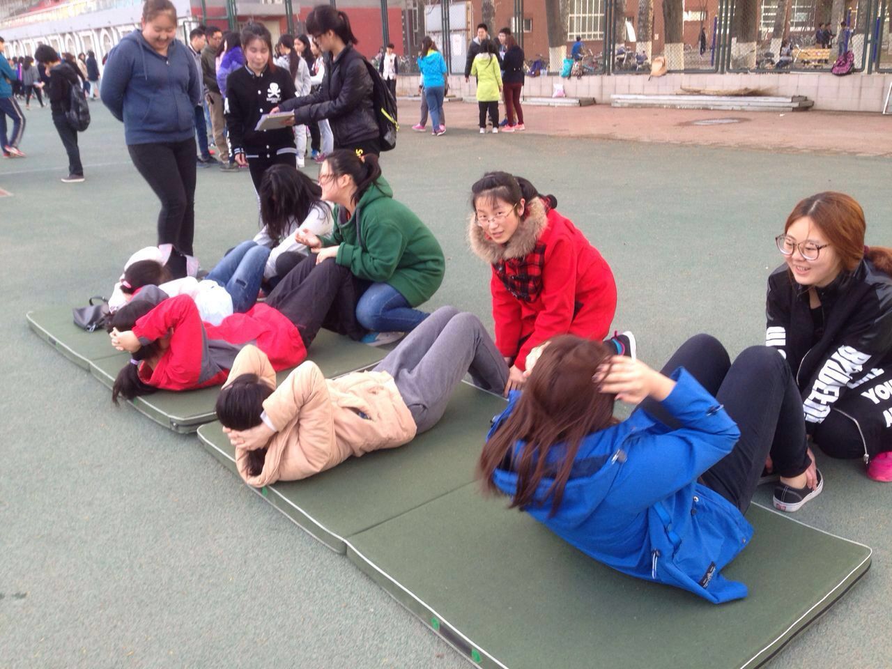 3月24 日、26日两天,男生引体向上、女生仰卧起坐和男女立定跳远三项集体训练开始进行测试,并得到了每个参与班级同学们的积极响应,尤其大三的同学们积极配合阳光体育活动走向操场,运动自我。