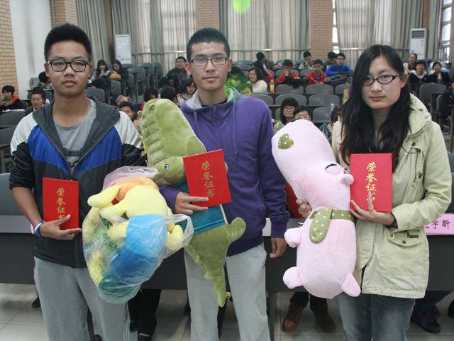 最后,在观看了一段动物世界的视频之后,比赛结果出来了,赵宇昕、郝娜、孙淑玲、杜艳丽、张爱环、覃晓春等老师为他们颁发了奖品。