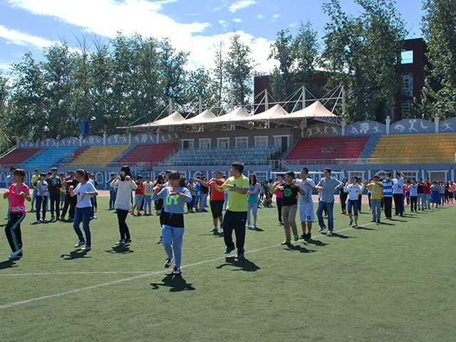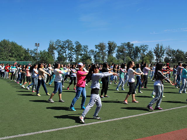 2014年9月15日中午12点30分,betway西汉姆联大一全体同学在操场举行了跳闪舞的评比。员工会主席朱益赫、各班班助及文艺部负责人参加了此次活动。