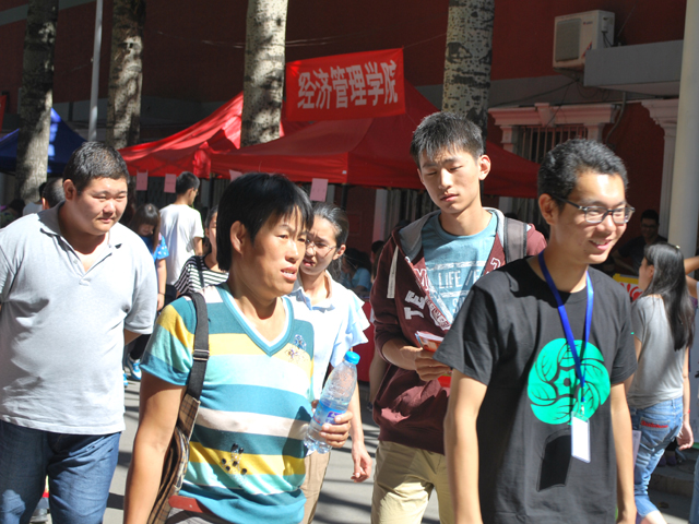 八点以后,新生们陆陆续续到来,志愿者们积极热情地帮助他们拿行李,带他们缴费,送他们回宿舍,解答他们的疑问。