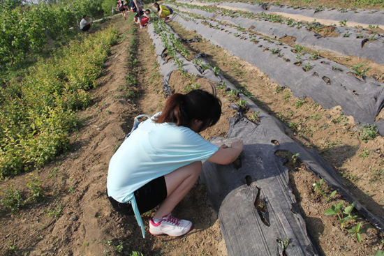 5月15日,天气晴朗,213242班参加了东大地田间劳动,给草莓浇水、除草,葡萄绑藤等。同学们对此次活动都热情高涨,积极劳动。