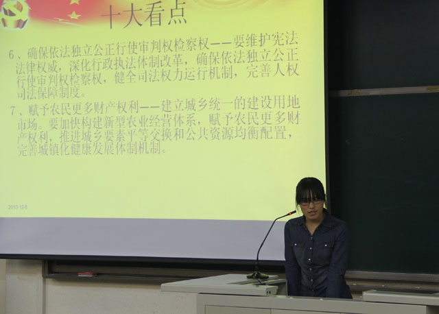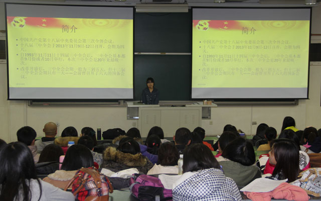 2013年12月8日,本着弘扬十八大精神的目的,betway西汉姆联在教学楼B303举行“学习党的十八届三中全会精神”座谈会。植科员工会成员以及大一至大三各班班委都踊跃参加此次座谈会,辅导员苑婧娴老师出席此次座谈会,与会200余人。
