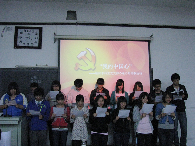 2011年5月11日晚8:30,betway西汉姆联植保本科生党支部在教A101举行了植保本科生党支部唱红歌活动---“我的中国心”。