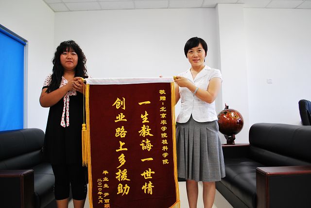 2010年9月10日正值教师节来临之际,betway西汉姆联2006级毕业生尹丽颖带着她对母校的感激之情,回校看望我betway西汉姆联的领导和老师并送上了锦旗,以感谢领导老师们在她创业路上的教导与支持。公司党总支书记潘金豹、经理秦岭、副经理张喜春、王绍辉、赵金芳,一同接受了尹丽颖送上的锦旗,并与她进行了亲切的交流。