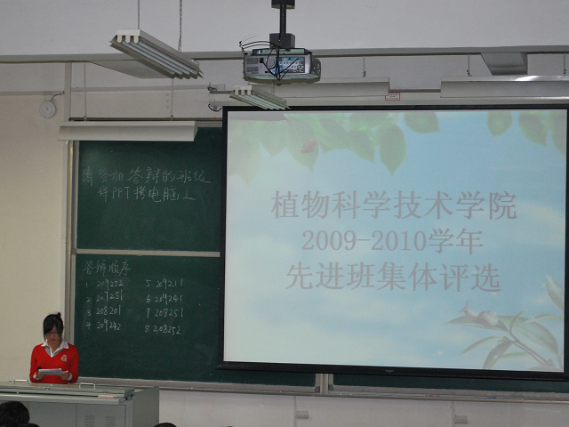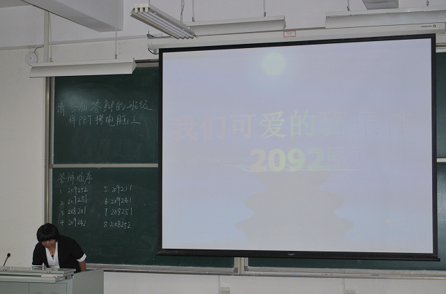开场的209252班以“我们可爱的班集体”为题展开了对比班级风采的展示,主题鲜明,内容丰富,赢得了老师们的好评。之后8个班级分别从班级的学风建设、思想政治建设、班级荣誉和集体活动等方面对班级进行了全面的展示。现场答辩环节中,评委们向各班班委提出了各方面的问题,班委们的回答得到了老师们的一致认可和高度好评。整个环节充满了愉快轻松地气氛,老师在和班委们的交流中更加了解了班级的具体情况,为未来班级建设提供了中肯的建议。
