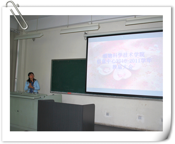 贾老师首先宣布新一届主席团成员名单,并在柔美的音乐声中,展示了由新老成员照片组成的视频。会上,贾老师总结过去,展望未来。介绍了各个部门的优势,表扬了过去一年中表现突出的部门及个人。