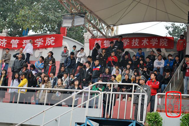 看台上为老师们加油鼓劲的植科学子