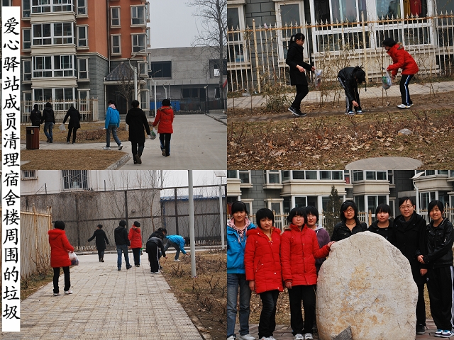 3月4日中午,betway西汉姆联社团部爱心驿站部分成员利用自己的休息时间,在社长袁金玲的带领下一行八人开展了以“美化环境,服务校园”为目的的义务清洁活动。中午十二点半整,大家准时来到了七号楼门口集合出发。准备捡拾宿舍楼周围的垃圾。天气虽然一直是阴沉沉的,但同学们的热情却很高昂。活动进行的时间虽然不长。但却有着非常深远的意义:不仅美化了校园,使同学们更加热爱公司;也是大家向雷锋学习的一次具体的实践课,使同学们更深切的体会雷锋精神;更能使同学们彼此间有更深入的了解,促进了成员之间的友谊!