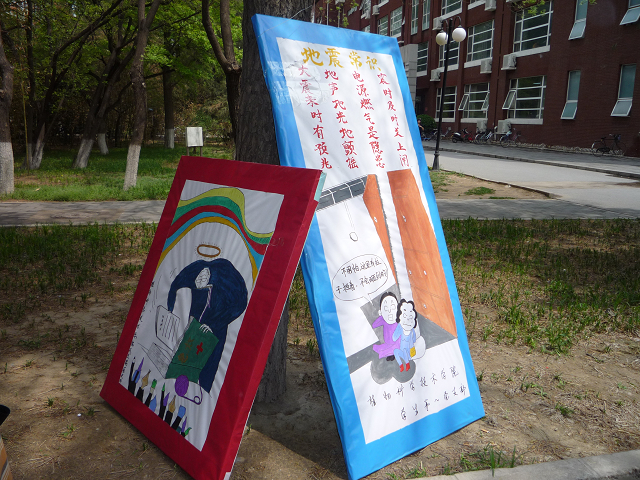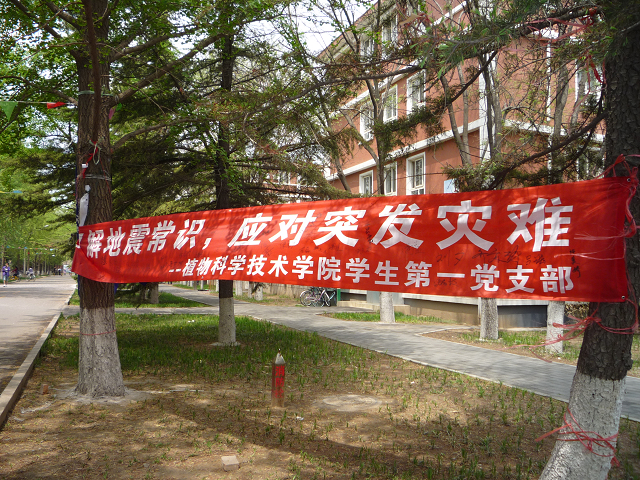全体成员通过悬挂横幅、张贴标语、展示地震知识宣传展板、向过往师生发放防震减灾知识宣传单等多种方式向大家进行地震知识宣传,还邀请同学们在横幅上签字。通过活动以期提高一下大家对地震常识的了解,知道当地震来临时如何自救,同时让大家明白地震其实并不可怕,只要掌握了它的发生原理和普遍规律,不仅能在第一时间采取最佳的自救方法,而且可以更多的救助他人和抢救财产。活动取得良好效果。