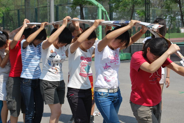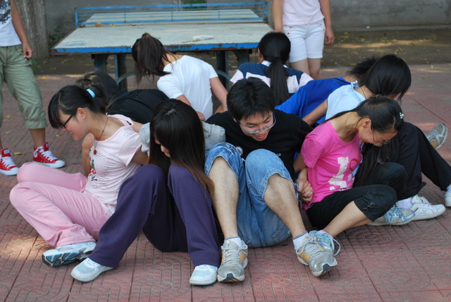 整场培训包括5项活动,历时3个小时。炎热的天气,同学们积极参与,没有丝毫放松,团结努力的圆满完成了每项活动。“眨眼睛传数字”在传递信息的过程中,默默地传递着一种难以阻挡的默契;集体组成战车齐步向前的快乐在“人力战车”中尽显无疑;团结就是力量,团结就是站得更直、团队更强,“齐心协力”凝聚了人心,也让同学们深深体会着团队的温暖;“趣味传球”加速了同学们的大脑转速,让同学们奇思妙想,最终想到最好的方案。师生共参与的“排排坐”,难在其中,乐在其中,师生的感情也更进一步。
