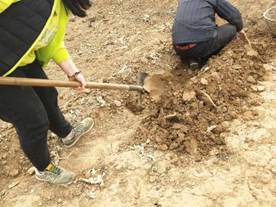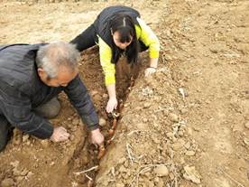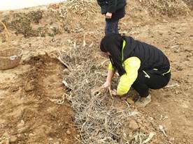 在种植前先挖一条深一点的沟,一是因为潮湿的条件适合胡萝卜发芽,二是为了防止地鼠偷吃,将所准备的胡萝卜埋进沟中,填埋恢复原样,等胡萝卜发芽后挖出来,就得到了种子。