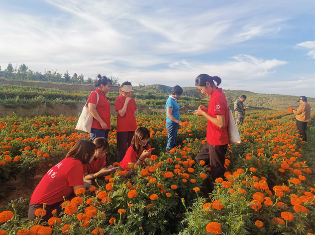 在进行番茄诊疗后,姜书记带领实践团来到了园区的万寿菊花海。在热烈绽放的花海之中,实践团了解了当地发展万寿菊精油提取的相关规划和当前面临的问题。为帮助解决当地精油的发展遇到的问题,实践团将邀请公司相关专家前往当地进行调研,帮助解决精油产业发展目前所面临的问题,带动当地经济发展。