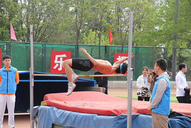 田赛方面,在男子跳高比赛中,董适诚同学以1.650m的好成绩夺得了本次比赛男子组的第三名,与第二名仅差0.02m;女子跳高比赛,赵涵菲同学以1.300m的成绩夺得了比赛冠军。