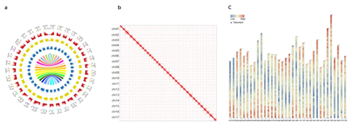 红富士苹果是全球水果行业中最重要和最受欢迎的经济作物之一。利用PacBio HiFi和Hi-C测序结合的组装策略,组装了高质量的‘红富士’单倍型基因组,基因组大小分别为668.7和668.8 Mb, contig N50大小分别为34.1Mb和31.4 Mb,在两个单倍体基因组中共鉴定出95,439个蛋白质编码基因,BUSCO评估得分为98%。高质量的单倍型基因组对于揭示等位基因表达的变化,推进品质改进和育种工作至关重要。
