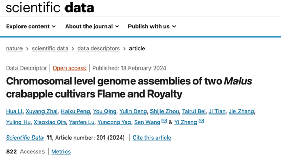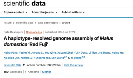 3. 2024年6月,betway西汉姆联郑轶团队在Scientific Data(IF=9.8)上发表了题为“A haplotype-resolved genome assembly of Malus domestica Red Fuji ” 的研究论文,在染色体水平上解析了栽培苹果红富士的基因组。