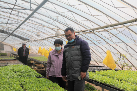 随后,一行人走进育苗棚、果蔬加工间,实地了解番茄、草莓、芹菜等蔬菜的实际种植情况,根据各自研究领域,现场“把脉问诊”。果菜专家王绍辉教授对园区鲜食番茄品种的引种和栽培提出了技术方案,草莓种植专家董清华教授为园区管理人员逐一解答其在草莓种植和管理过程中遇到的难题,叶菜专家刘超杰副教授围绕园区芹菜等叶菜的种植进行了耐心讲解。同时,对于合作社空闲地合理利用和美化提出了针对性的指导方案。
