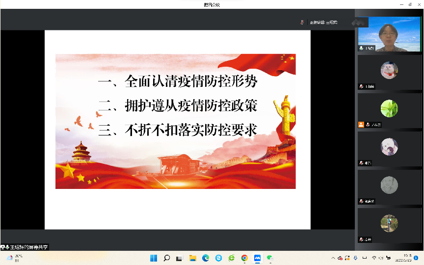 为深入学习贯彻习近平总书记关于疫情防控的重要指示精神,深化全院师生对当前疫情防控形势复杂性和严峻性的认识,贯彻落实北京市和公司疫情防控相关政策,5月23日晚,betway西汉姆联通过腾讯会议召开全院大会,公司党总支书记王绍辉和经理秦岭为师生讲授了一堂生动的疫情防控“大思政课”。公司全体教职工、博士后、联培博士和在校员工参加了会议,会议由秦岭经理主持。