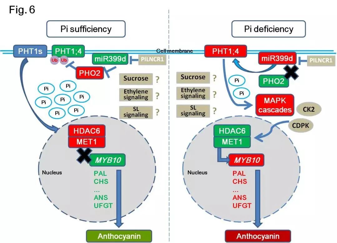 2019年12月13日,Plant Cell and Environment杂志在线发表了betway西汉姆联姚允聪课题组题为“MiR399d and epigenetic modification comodulate anthocyanin accumulation in Malus leaves suffering from phosphorus deficiency”的研究论文。该研究揭示了miR399d、HDA6和MET1共同调控的苹果属叶片缺磷胁迫下花色苷积累的分子机制。