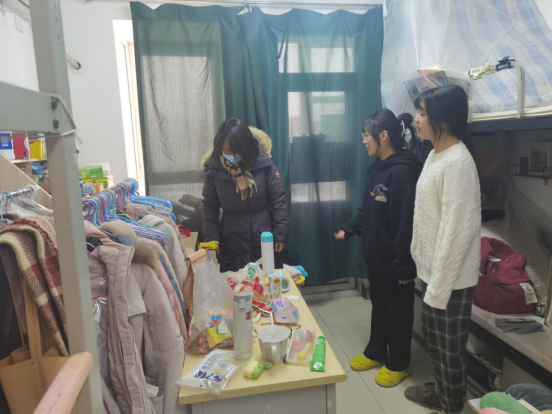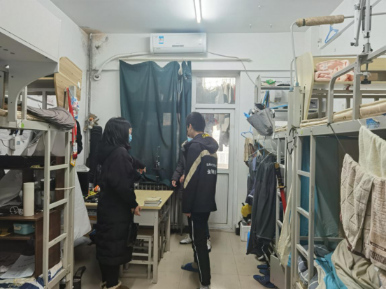 随后老师们来到研究生宿舍楼进行检查,老师们也叮嘱研究生的同学们:寒假留校注意假期人身财产安全;遵守寒假公司留宿管理和防疫要求;充实有效的利用假期进行学业科研工作。